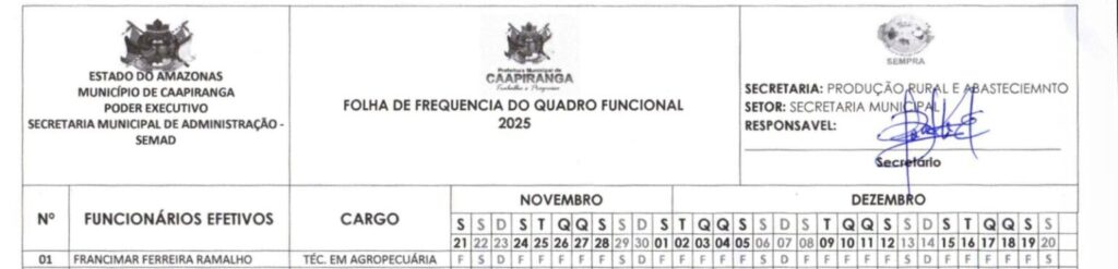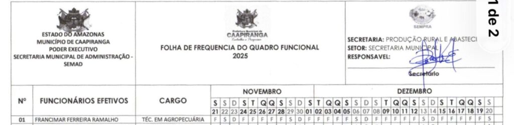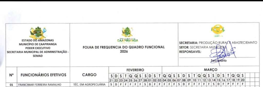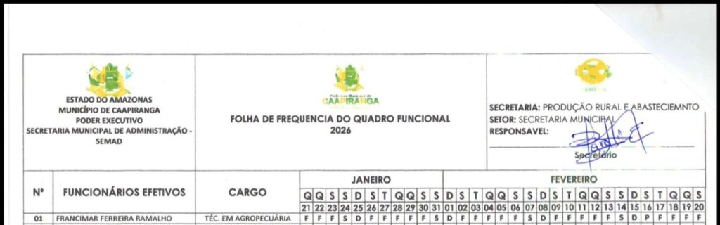 Circulam informações de que um servidor estaria há meses sem exercer suas funções regularmente, acumulando faltas no período de novembro de 2025 até março de 2026.