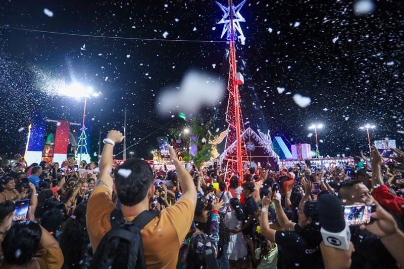 O momento mais aguardado da noite foi a contagem regressiva para o acionamento da Árvore de Natal digital. Assim que o monumento ganhou luz, a praça foi tomada por neve artificial e um show de fogos que encantou o público. A programação artística trouxe o Coral e a Orquestra Municipal, Ballet Teen, Corpo Coreográfico e apresentações teatrais que relembraram o nascimento de Jesus.