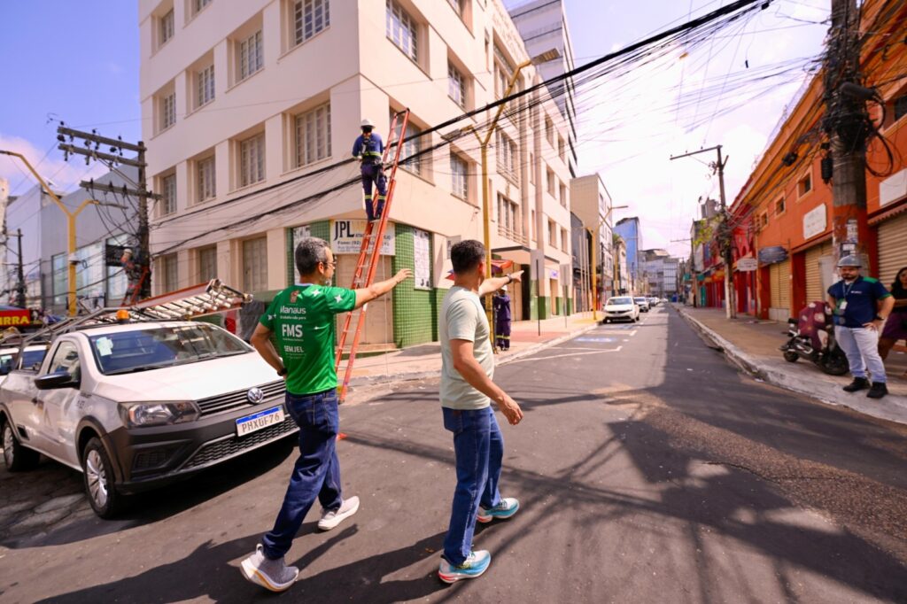 “Estamos aqui na Quintino Bocaiúva acompanhando o trabalho de retirada desses fios, que está diminuindo bastante essa poluição visual na cidade de Manaus. Esse é um trabalho contínuo, já estamos aqui há 45 dias trabalhando, já chegamos há mais de seis toneladas de fios e cabos removidos só no centro de Manaus, e o nosso trabalho vai avançar”, afirmou David Almeida.